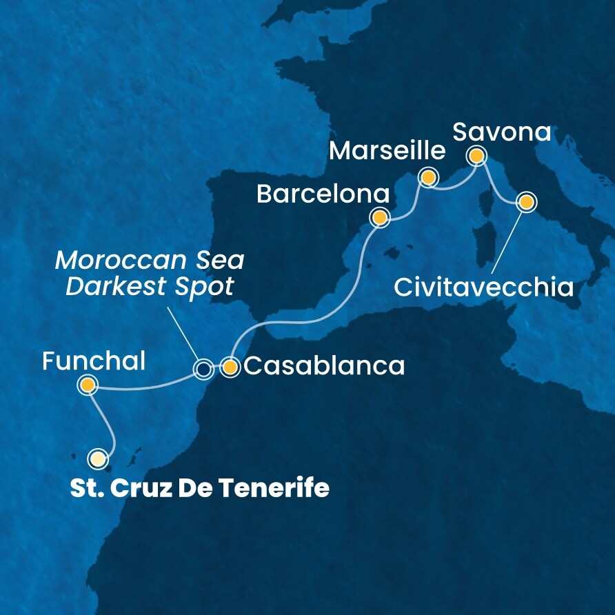 | 13/04 | 3° - Lunedì | in navigazione tra cielo e mare Moroccan Sea Darkest Spot |